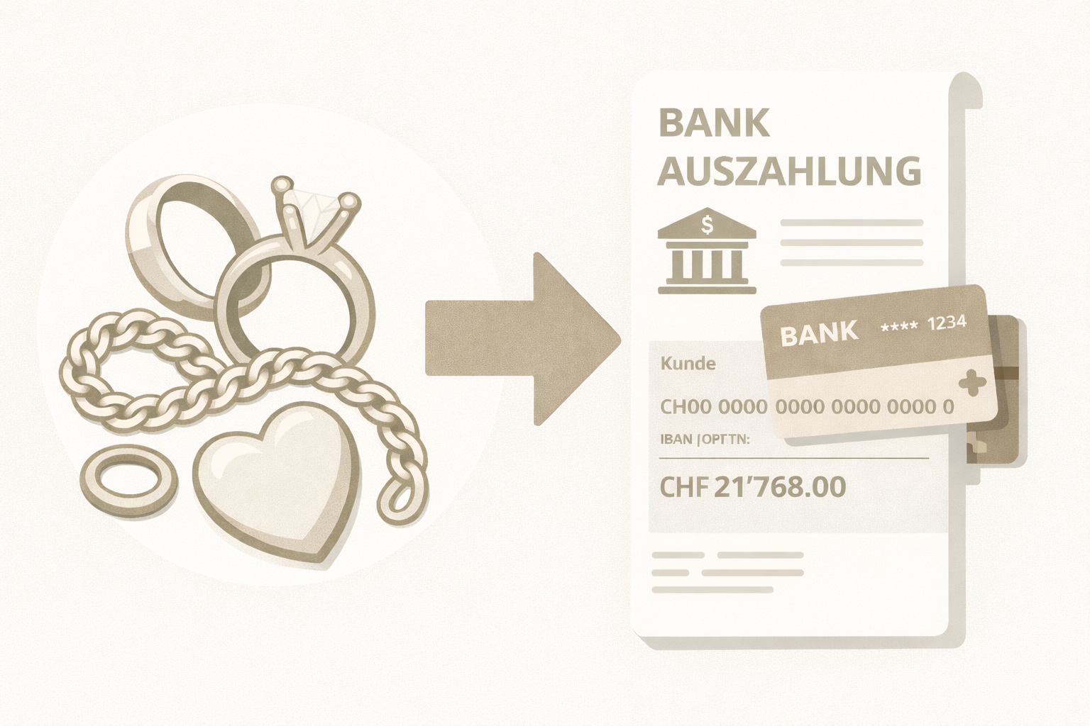 Aus altem Schmuck oder Altgold wird bei uns ein transparenter und nachvollziehbarer Gegenwert. Nach sorgfältiger Bewertung überweisen wir den Betrag direkt auf Ihr Bankkonto. Seriosität, Nachvollziehbarkeit und Vertrauen stehen dabei im Mittelpunkt.